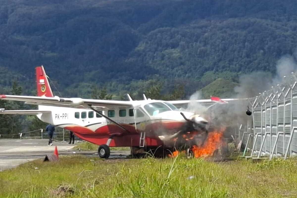 Benturan keras membuat badan pesawat langsung terbakar. Asap tebal hitam membumbung tinggi di langit Ilaga dan sontak menarik perhatian warga serta aparat keamanan yang bertugas di sekitar lokasi.